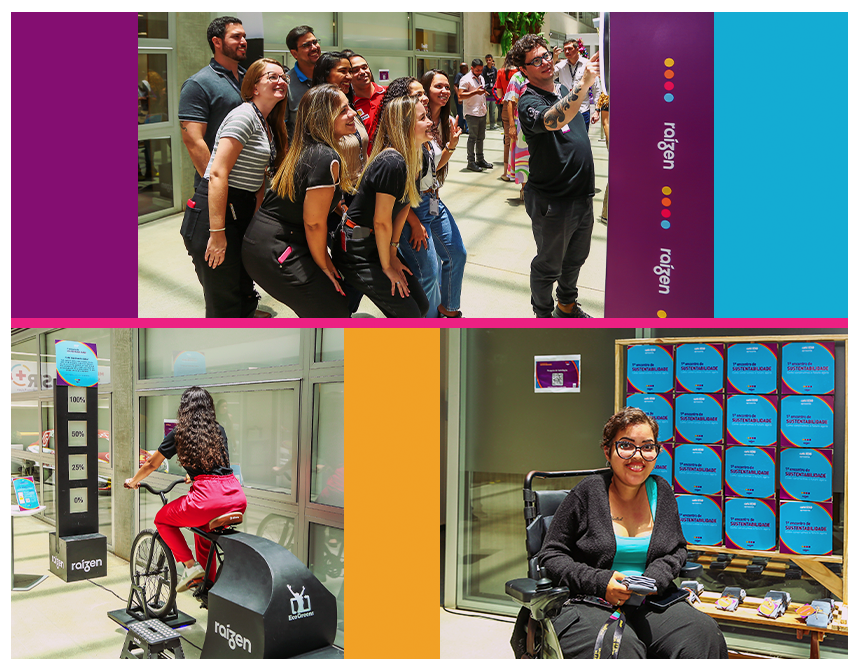 Também aconteceram ativações temáticas e educativas sobre os temas materiais e Compromissos Públicos Raízen na agenda de sustentabilidade.