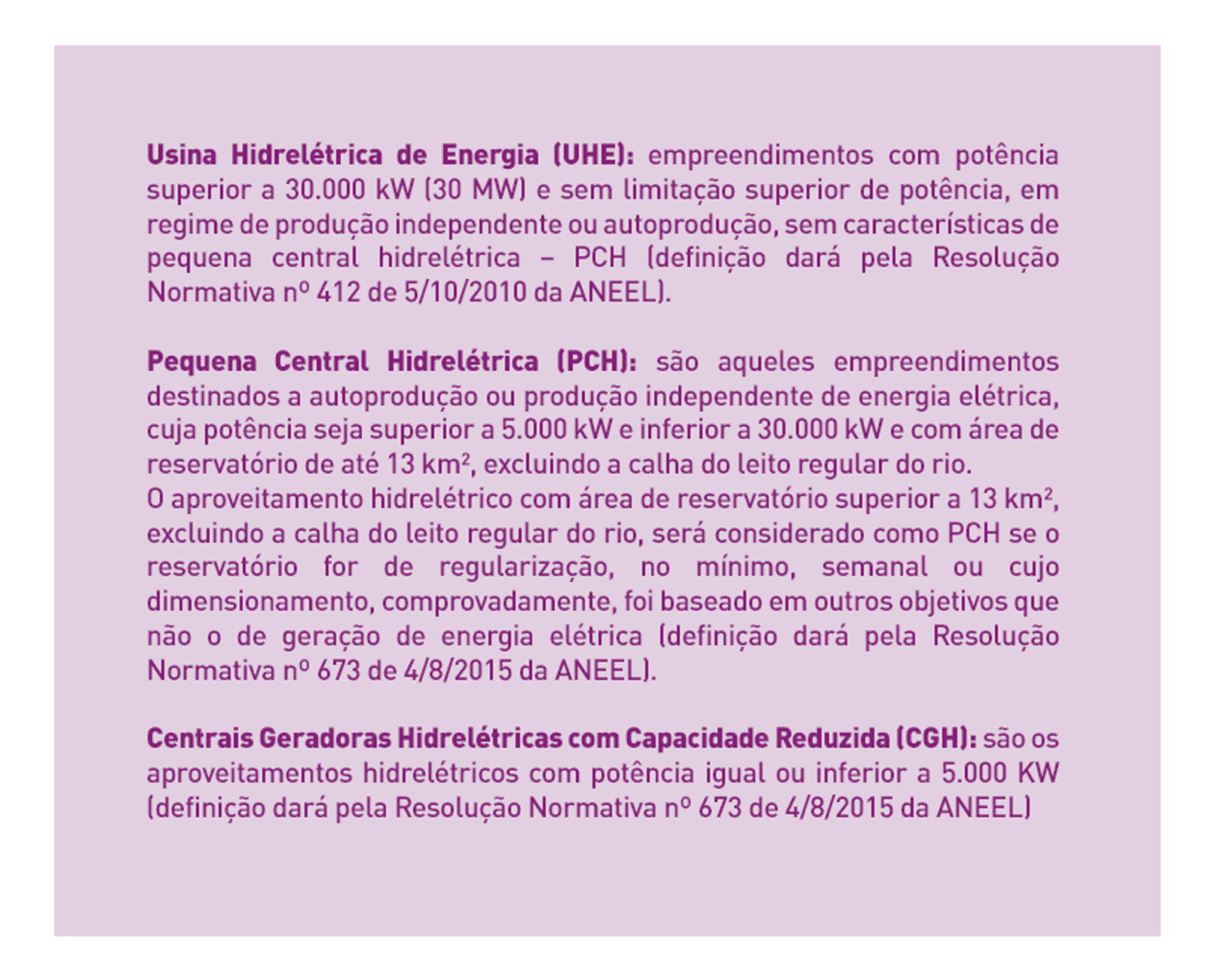 Soma-se às 219 usinas hidrelétricas de grande porte (UHEs), um número crescente de pequenas centrais hidrelétricas (PCHs) e centrais geradoras hidrelétricas (CGHs) implantadas anualmente.
