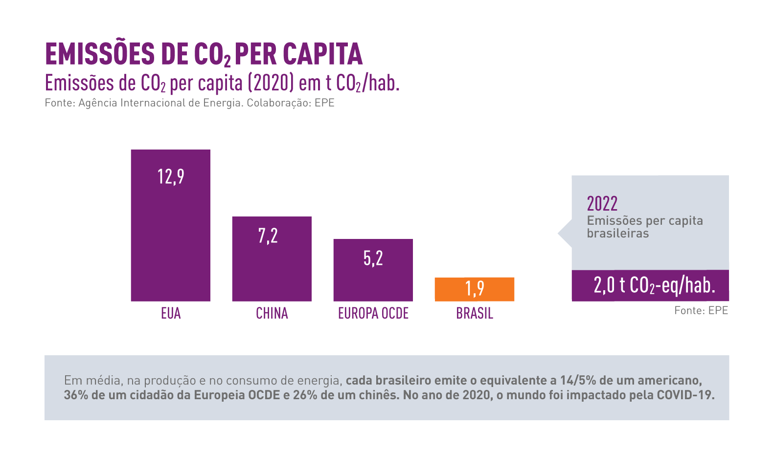 No comparativo global, nossa emissão per capita, quando se considera produção e consumo energético do brasileiro, é muito inferior à de grandes economias: